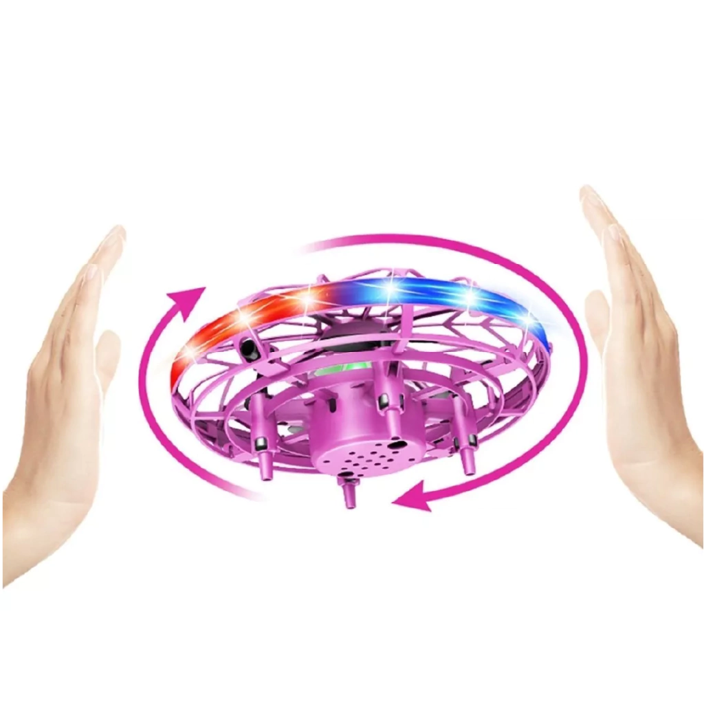 El Mini Drone UFO TXD-3S es un juguete ideal para niños a partir de 3 años. Con su diseño en forma de OVNI y luces LED de colores, ofrece una experiencia de vuelo divertida y visualmente impactante. Gracias a su sensor de proximidad, puede ser controlado con las manos, sin necesidad de tocarlos, lo que lo hace fácil de manejar. Su rejilla protectora de plástico ABS flexible protege las hélices, garantizando mayor seguridad. Con una batería recargable, el dron permite hasta 10 minutos de vuelo continuo.